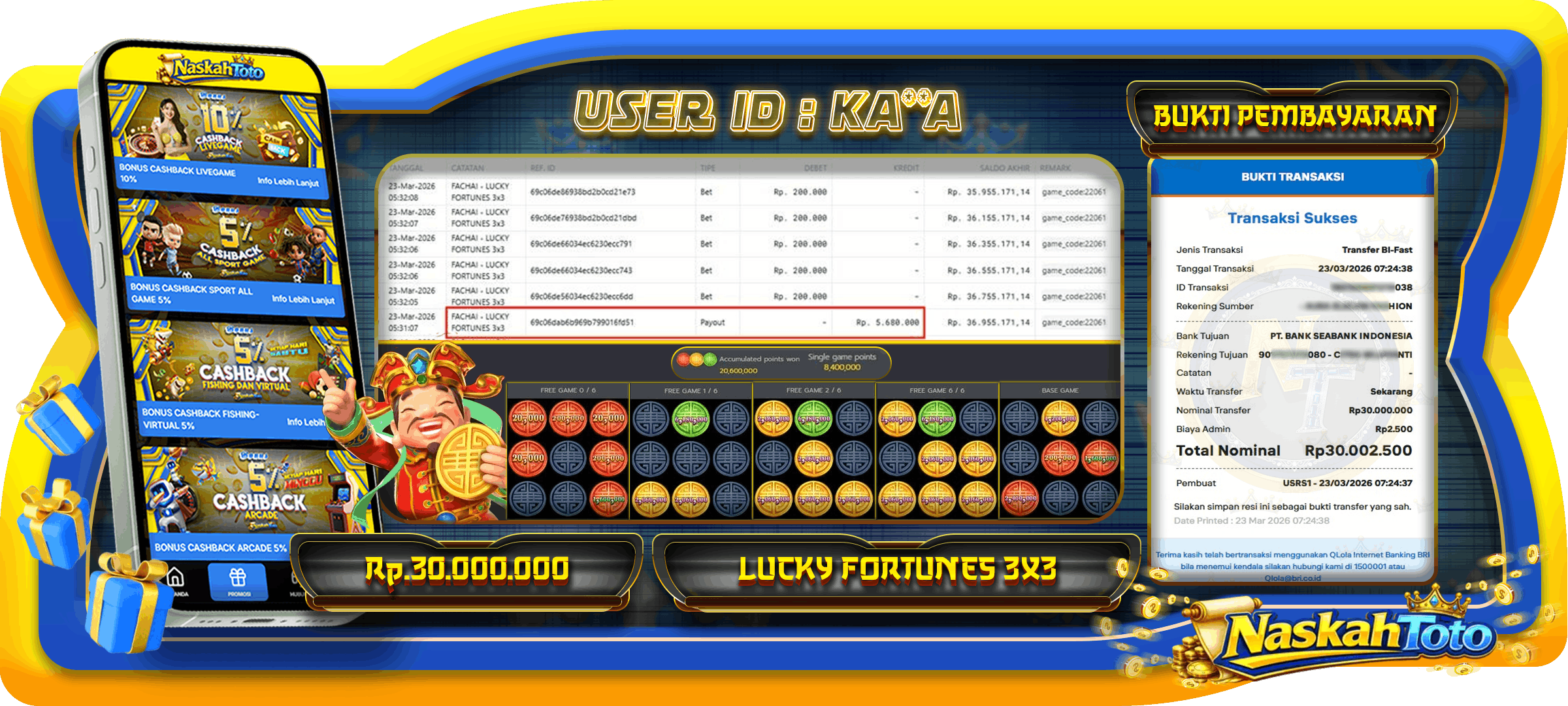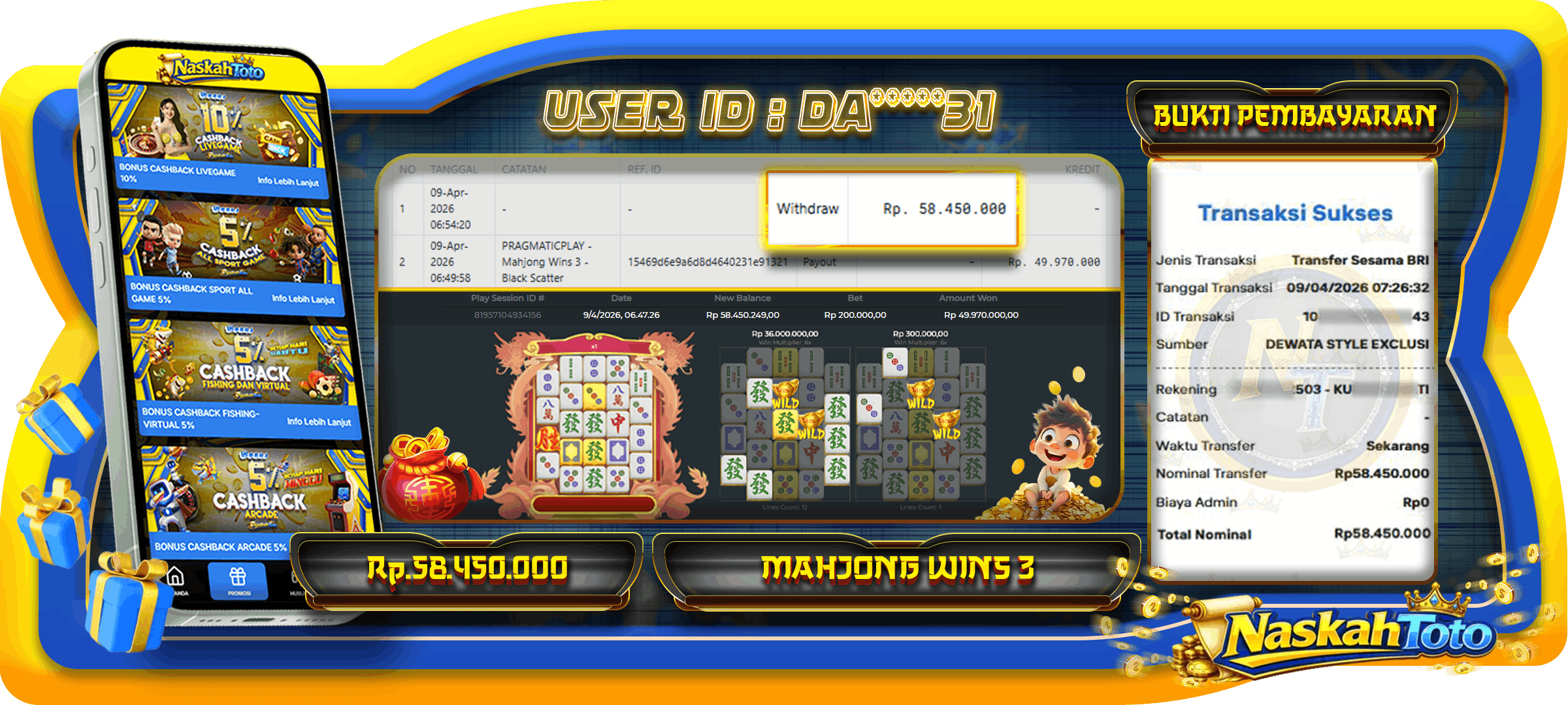 NASKAHTOTO memastikan semua kemenangan member dibayar secara lunas tanpa persyaratan lanjutan. Berikut adalah link resmi yang memperlihatkan bukti pembayaran kemenangan member disitus Naskahtoto. Baik permainan slot gacor, togel online, live casino, sportsbook, tembak ikan, sabung ayam, semua permainan dipastikan memiliki sistem fairplay dengan peluang jackpot yang adil bagi seluruh pemain