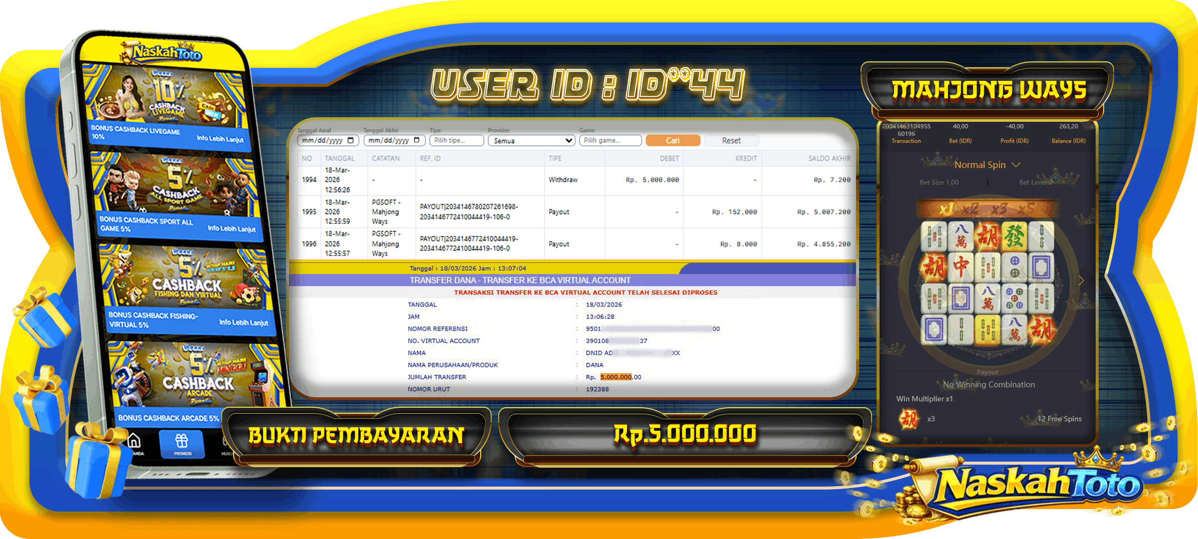 NASKAHTOTO memastikan semua kemenangan member dibayar secara lunas tanpa persyaratan lanjutan. Berikut adalah link resmi yang memperlihatkan bukti pembayaran kemenangan member disitus Naskahtoto. Baik permainan slot gacor, togel online, live casino, sportsbook, tembak ikan, sabung ayam, semua permainan dipastikan memiliki sistem fairplay dengan peluang jackpot yang adil bagi seluruh pemain